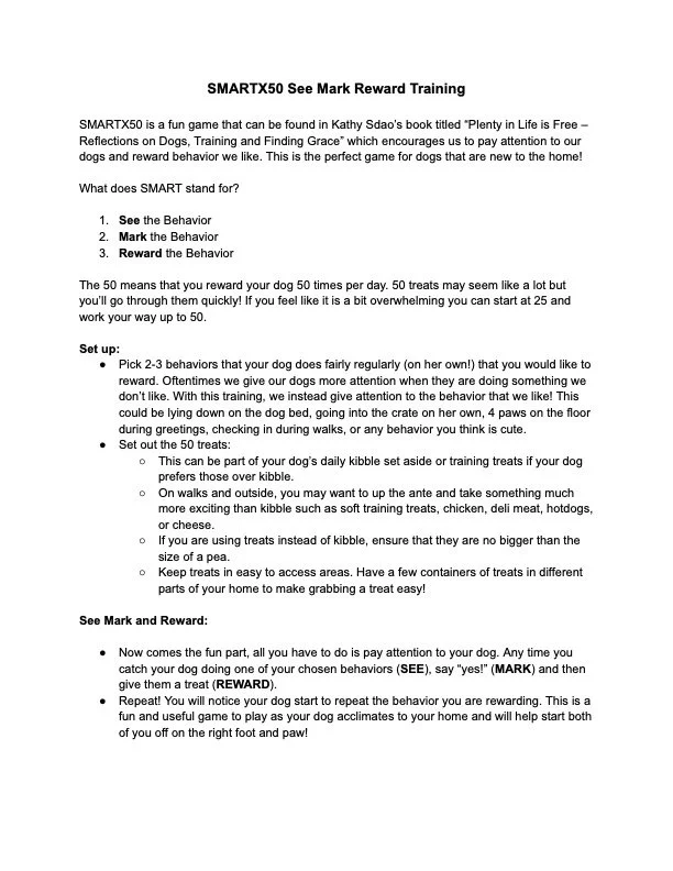 Below are resources on helping your dog transition to your new home and recommended supplies and trainers.