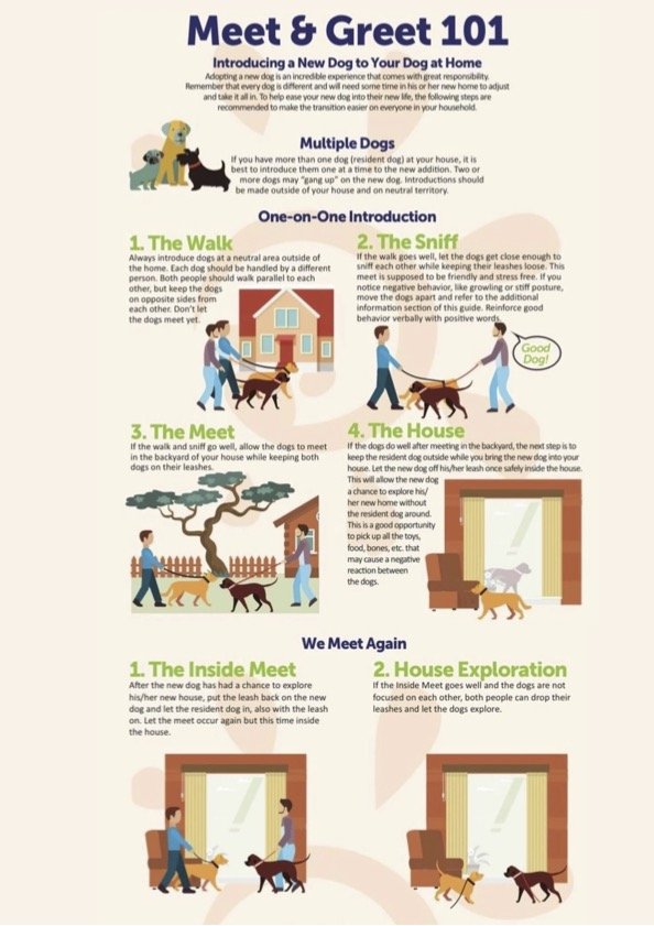 We always recommend slow intros between dogs, so they can build trust, which increases the chances that they’ll get along and ensures safety.